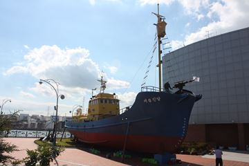 장생포 고래박물관 앞 포경선은 1985년까지 실제 운행하던 어선인 제6진양호이다.