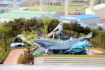 고래조각공원에 배치된 고래조각들. 공원 곳곳에서 고래 관련 전시물을 볼 수 있다.