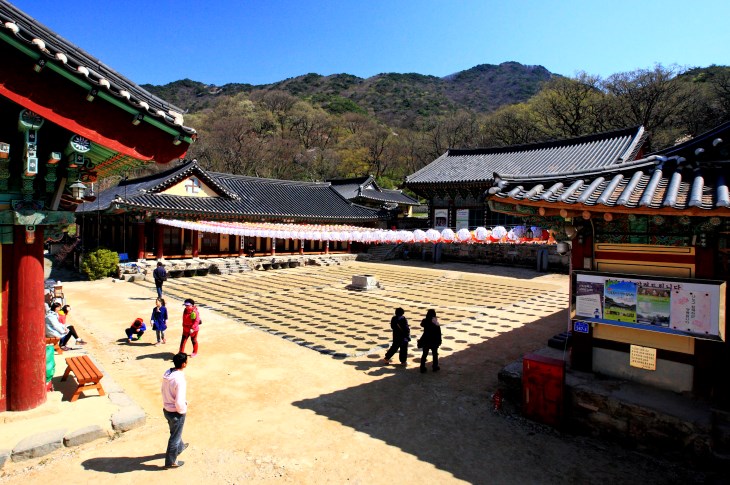 대웅전과 강당, 진해당과 적묵당이 '□'자 형태의 가람을 이룬다.2