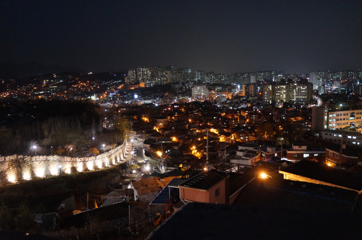 오래전 같은 길을 거닐며 시상을 떠올렸을 문인들의 모습이 그려지기도 하고, 운치 있는 정경에 넋을 잃고 바라보게 되기도 한다. 또 이화동, 충신동, 창신동 등 낙산 아래에 오밀조밀 모여 있는 동네의 밤 풍경을 내려다보고 있으면 왠지 모를 애틋함도 밀려온다. 낙산공원의 성곽길은 그렇게 사람들에게 잊을 수 없는 추억을 선사한다.