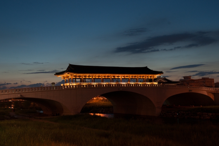 고요히 내려앉은 밤거리에 화려하고도 우아한 자태로 다리 위의 한옥에서 불빛을 비춘다. 다리 밑으로 흐르는 물소리가 맛의 고향답게 정겨운 소리를 낸다. 남천교의 다리에서 내려다보이는 다리 밑 물결이 한옥의 팔작지붕과 어울려 선비가 된 착각을 하게 한다. 다리 위에서 떠올려 본 시상을 한소리 읊어보고 전주의 야시장의 수제용품들을 구경하고 나면, 출출한 배를 달래기 위해 막걸리 골목에 가서야 발길이 멈춘다. 하루 저녁의 밤 나들이 코스로 이만한 것이 있을까?
