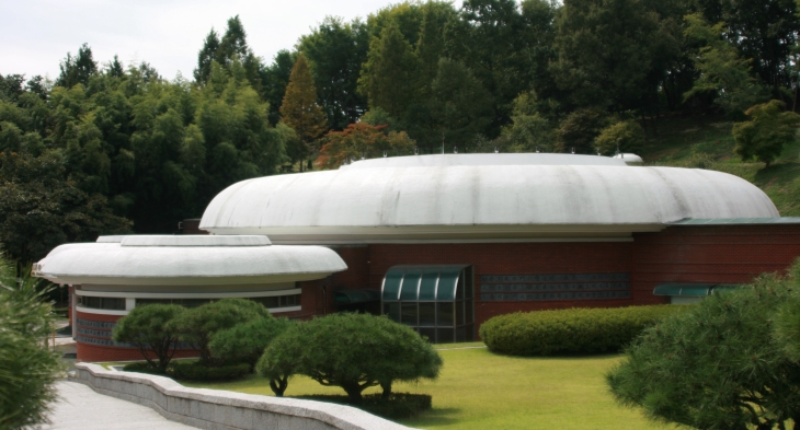 흥덕사지에 있는 청주고인쇄박물관. 둥글둥글하게 말려있는 듯한 두루마리의 모습을 띠고 있다.