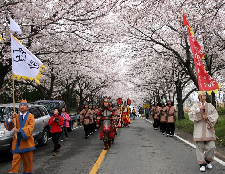 왕인문화축제 퍼레이드는 영암의 벚꽃길을 따라가며 펼쳐진다.