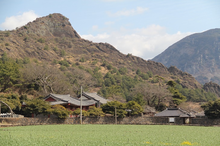 마을을 나오면 바굼지(바구니의 제주 방언)오름이라 불리는 ‘단산’도 보게 되는데, 보통의 오름과 달리 바위로 이루어져 괴이한 형상이 추사체에 영향을 주었을 것이라는 설도 있다. 단산을 넘는 중에 산방산과 제주의 넓은 벌판을 볼 수 있어 가슴이 트인다. 추사가 보았을 풍경이라 생각하면 한 번 더 바라보고 싶기도 하다. 산 아래에는 그가 현판을 썼다는 대정향교가 잘 보존돼있다. 세한도의 모델이 됐다는 말도 있는 소나무를 감상하는 재미도 있다. 1코스는 두 시간 정도면 가볍게 완주할 수 있지만, 추사의 유배 생활에 이입해 걷다 보면 절로 진지해진다. 한적한 자연이 함께하기 때문에 마음도 더욱 깊어지는 길이다.