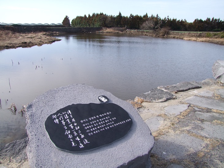 추사유배길 2코스 인연의 길 첫 도착점인 '수월이 못'에 새겨진 추사의 한시가 운치를 만든다.