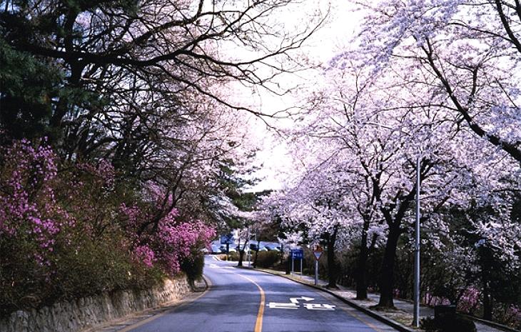 워커힐 길은 봄이면 꽃으로 환하게 물든다.