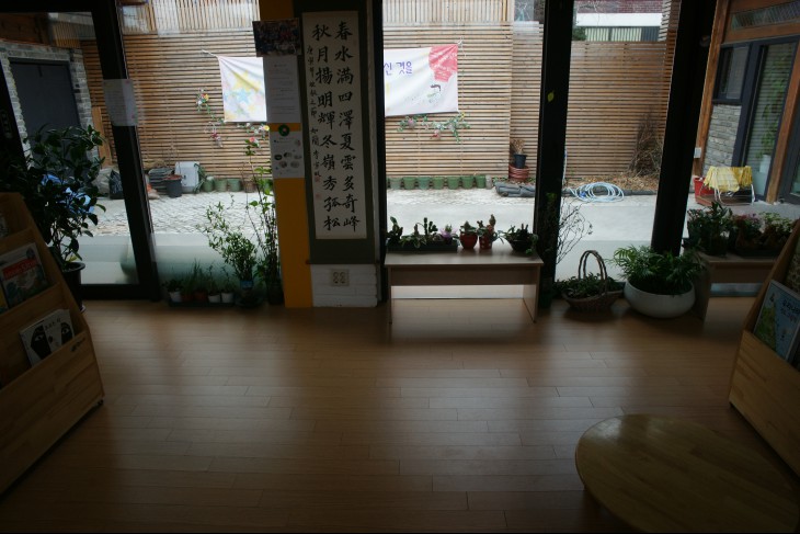 마당을 안쪽으로 끌어들인 디자인도 처음 찾은 사람에게는 생소한 형태다. 리모델링하기 전, 한식당으로 쓰이던 이 집이 가지고 있던 ㄷ자 형태를 그대로 살렸다. 그러면서 남겨진 공터를 마당으로 삼아 아이들이 안과 밖을 왔다 갔다 할 수 있도록 만들었다. 마당 창가에는 다독상을 받은 회원의 화분을 늘어놨다. 한 달에 한 번씩 다독상을 뽑아 자신의 이름이 붙은 화분을 주고 도서관에서 키울 수 있게끔 한 것이다. 물을 주러 자주 들를수록 도서관에서 새로운 책을 읽을 시간도 늘어날 테니 일석이조다.