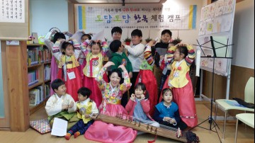 한옥체험 캠프에서 예절도 배우고 전통음악체험도 해보는 아이들