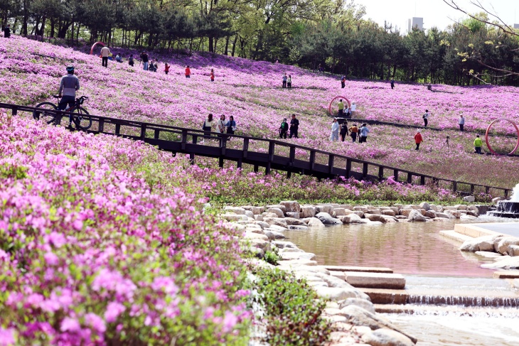 ‘역대급’ 철쭉제에 기대감 뿜뿜~ 흩날리는 벚꽃잎이 다 지면 철쭉이 활짝 핀 숲에서 힐링하세요.