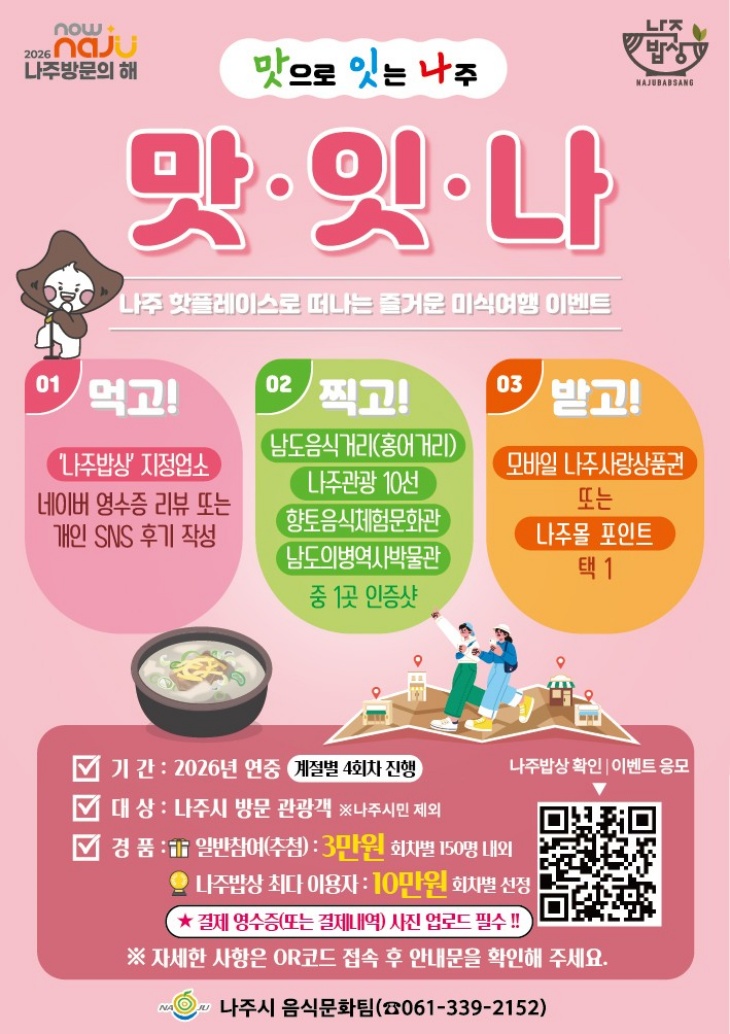 전남 나주시가 ‘2026 나주방문의 해’를 맞아 시 대표 음식 브랜드인 ‘나주밥상’을 앞세운 사계절 미식 이벤트 ‘맛으로 잇는 나주, ‘맛잇나’의 2회차(봄) 운영을 본격적으로 시작한다.