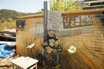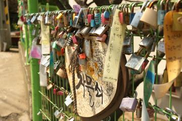 마을에는 나무판이나 자물쇠를 매는 공간이 있어, 마을에 온 추억을 남길 수 있다.