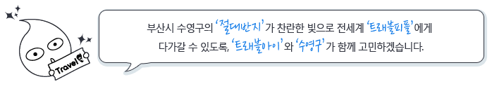 대도시에서 언제나 달려갈 수 있는 아름다운 해변이 있다는 것은 분명 축복받은 일이다. 그런 점에서 광안리해수욕장 등 도심 속 천혜의 아름다움을 간직한 부산시 수영구는 언제나 찾는 이들로 북새통을 이루며 꾸준히 사랑 받고 있는 축복 받은 관광도시라 하겠다.