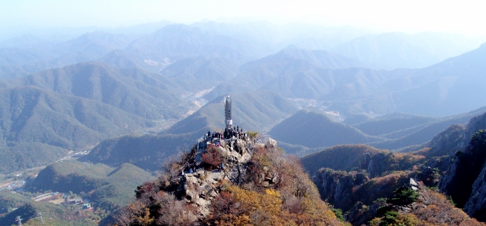 단풍이 들 때마다 빠지지 않고 거론되는 곳이 있다. 논산 대둔산도립공원이다. 케이블카와 산장이 설치되어 있고 등산로가 잘 정비되어 부담 없이 오를 수 있는 곳이다. 81 미터라는 길이를 자랑하는 구름다리, 절벽 사이에 조성한 가파른 철제계단이 있는 수락계곡, 군지폭포, 선녀폭포 또한 일품이다.