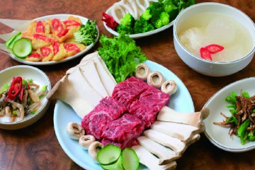 김해시청을 지도 가운데로 놓고 보면 양쪽에 각각 어방동과 주촌리라는 지역이 있다. 둘 다 도축장이 들어서 있어 신선한 고기를 싼 값에 구할 수 있는 것이 장점이다. 이런 환경을 지니고 태어난 향토음식이 진영갈비와 김해 뒷고기다. 진영갈비는 얇게 포를 뜬 소갈비를 두루마리처럼 말아 양념장에 재워 구운 것이다. 가격대에 비해 양이 많은 편이라 진영의 향토음식으로 자리잡은 것. 한편 이 주변에서는 갈비 맛도 집집마다 차별화를 시켰다는 점이 흥미롭다. 어떤 곳은 뚝배기 된장찌개를 내놓아 된장맛으로 사람들을 끌어당기는가 하면 어떤 곳은 지하수를 끌어와 요리를 한다니 그 경쟁이 치열하다.