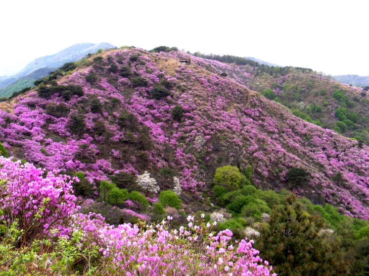 다섯 빛깔 연꽃이 피었던 그 산, 봄이 되면 진달래가 만개한다.