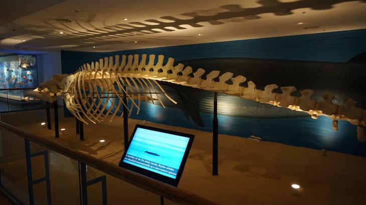 해양종합전시관 한쪽 크게 자리 잡은 고래의 골격은 그 크기가 사진 한 장에 다 담을 수 없는 정도이다.
