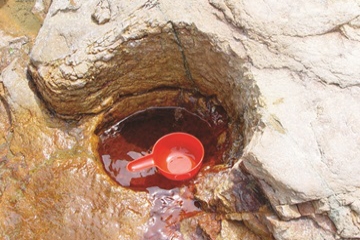 탄산수로 철분을 다량 함유한 오색약수. 주변바위가 붉게 변한 것이 보인다.2