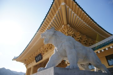 현충문 앞에는 예로부터 충신과 효자를 보호해준다는 호랑이 조형물이 세워져 있다.